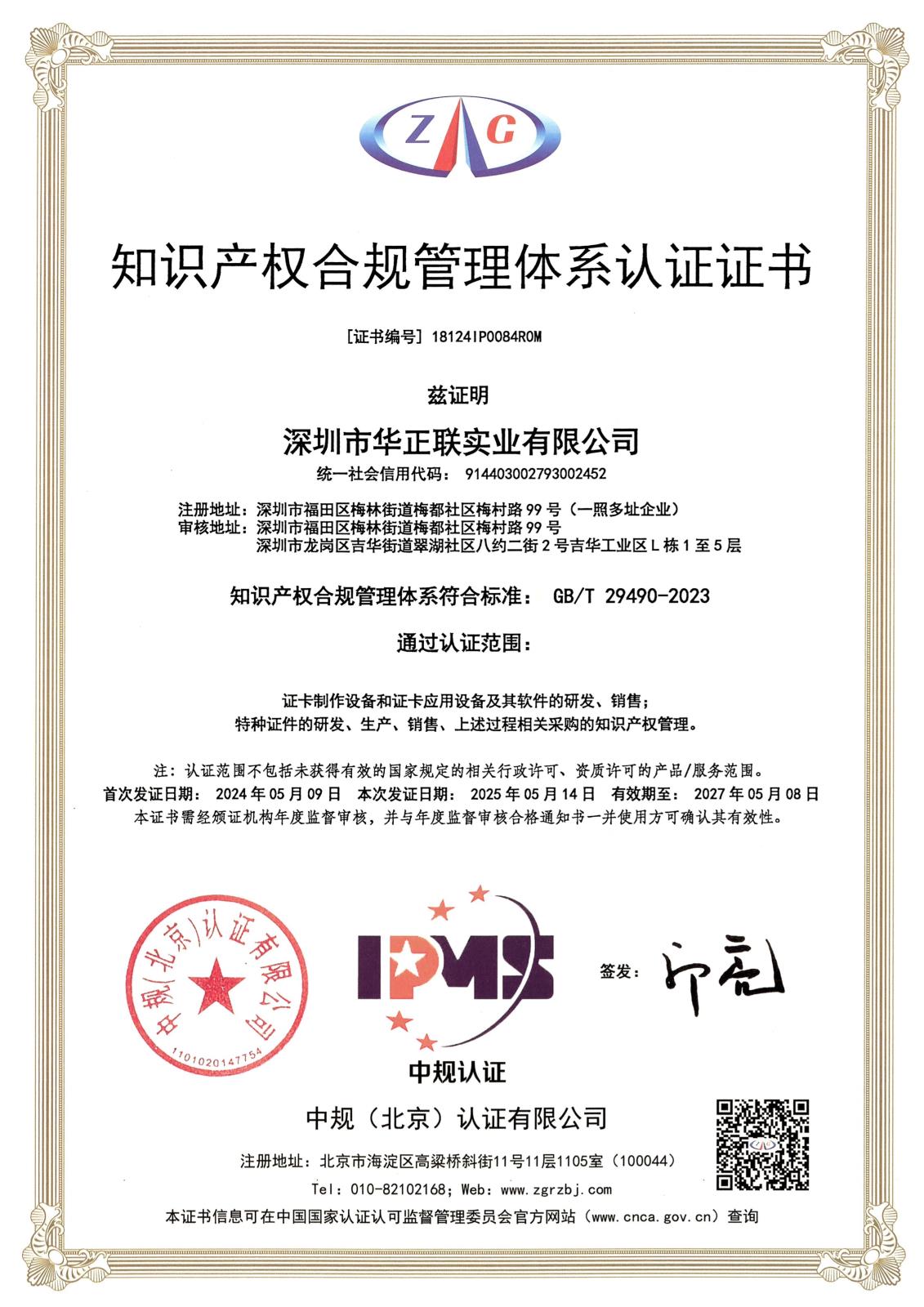 知识产权合规管理体系证书